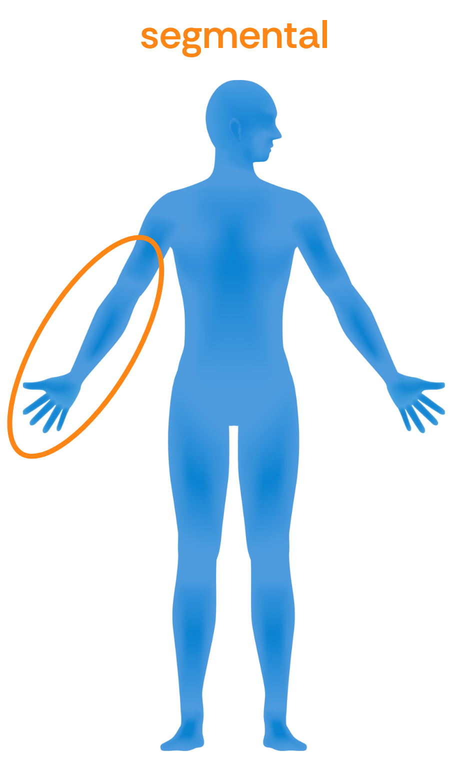 Multisegmentale Spastik: Betrifft zwei Extremitäten, z.B. Arm und Bein, oder eine Extremität und den angrenzenden Rumpf, z.B. Arm und Schulter oder Bein und Becken.