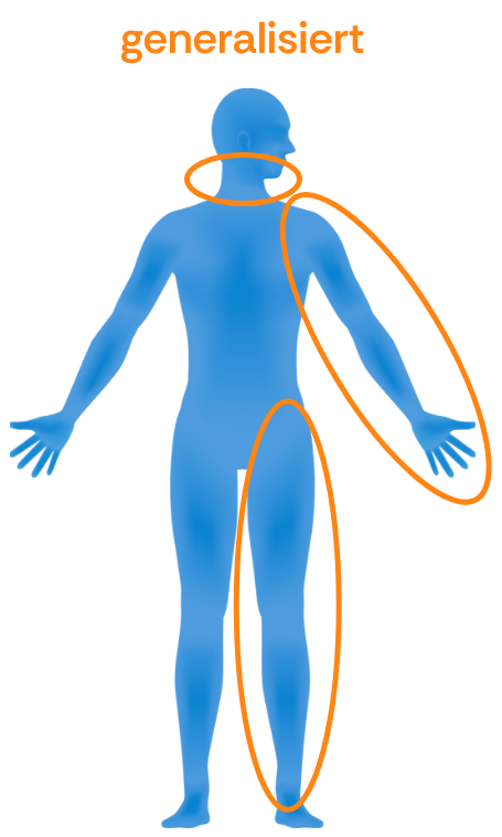 Generalisierte Spastik: Betrifft mehr als zwei Extremitäten und ggfs. den Rumpf.